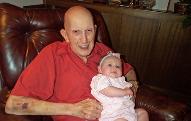 Grandpa Tingey holding Luca in Bountiful, Utah