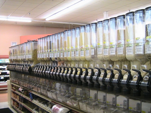 When I finished scooping what I thought to be about 2 lbs worth, I fastened a twist-tie around the bag and started looking for a pen to write down the bin number. I couldn’t find one and didn’t feel like asking the sweeper would be in my best interest so I memorized the bin number. But when I got up to the register to pay, I couldn’t remember the number. Luckily, the cashier didn’t seem to mind. She flipped through her little cheat book, found the item and ten-keyed the number before I could apologize.